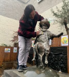 Etkinlik kapsamında, Binfikir Çocuk Tiyatrosu’nun minik oyuncuları heykeli temizleyerek renkli görüntüler oluşturdu. Çocukların çizdiği bazı resimler de Nasrettin Hoca heykelinin arka duvarına asıldı.